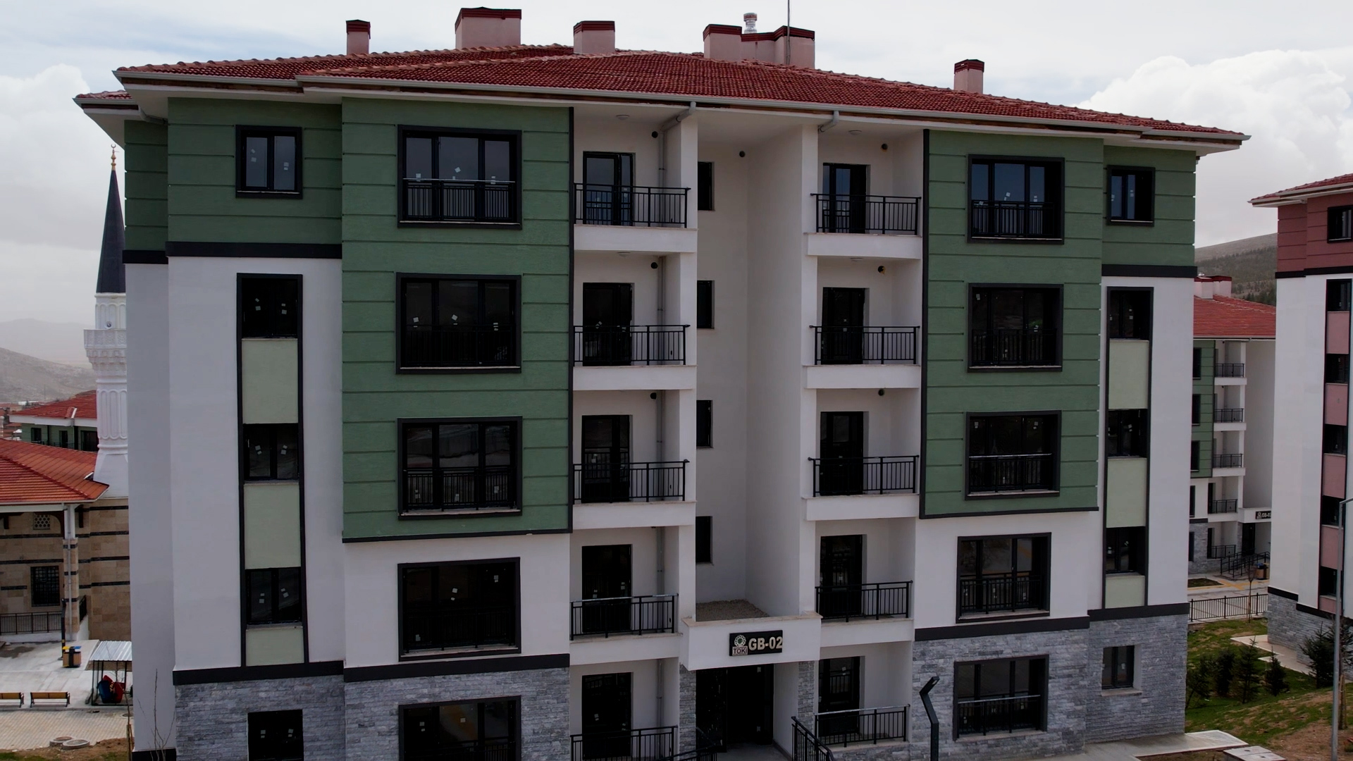 Yatay mimari anlayışıyla yapılan konutlar; radye temel üzerine, tünel kalıp sistemi ile depreme dayanıklı olarak inşa edildi.