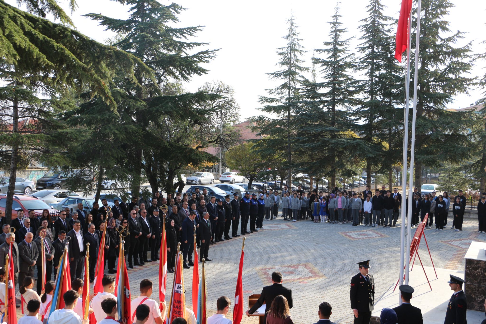 Yunak Hükümet Konağı önünde düzenlenen çelenk sunma törenine, İlçe Kaymakamı Can Alperen Taşavlı, Belediye Başkanımız Subhan Günaltay, Cumhuriyet Başsavcısı Berşan Özdil, ilçe protokolü, kurum amirleri katıldı.