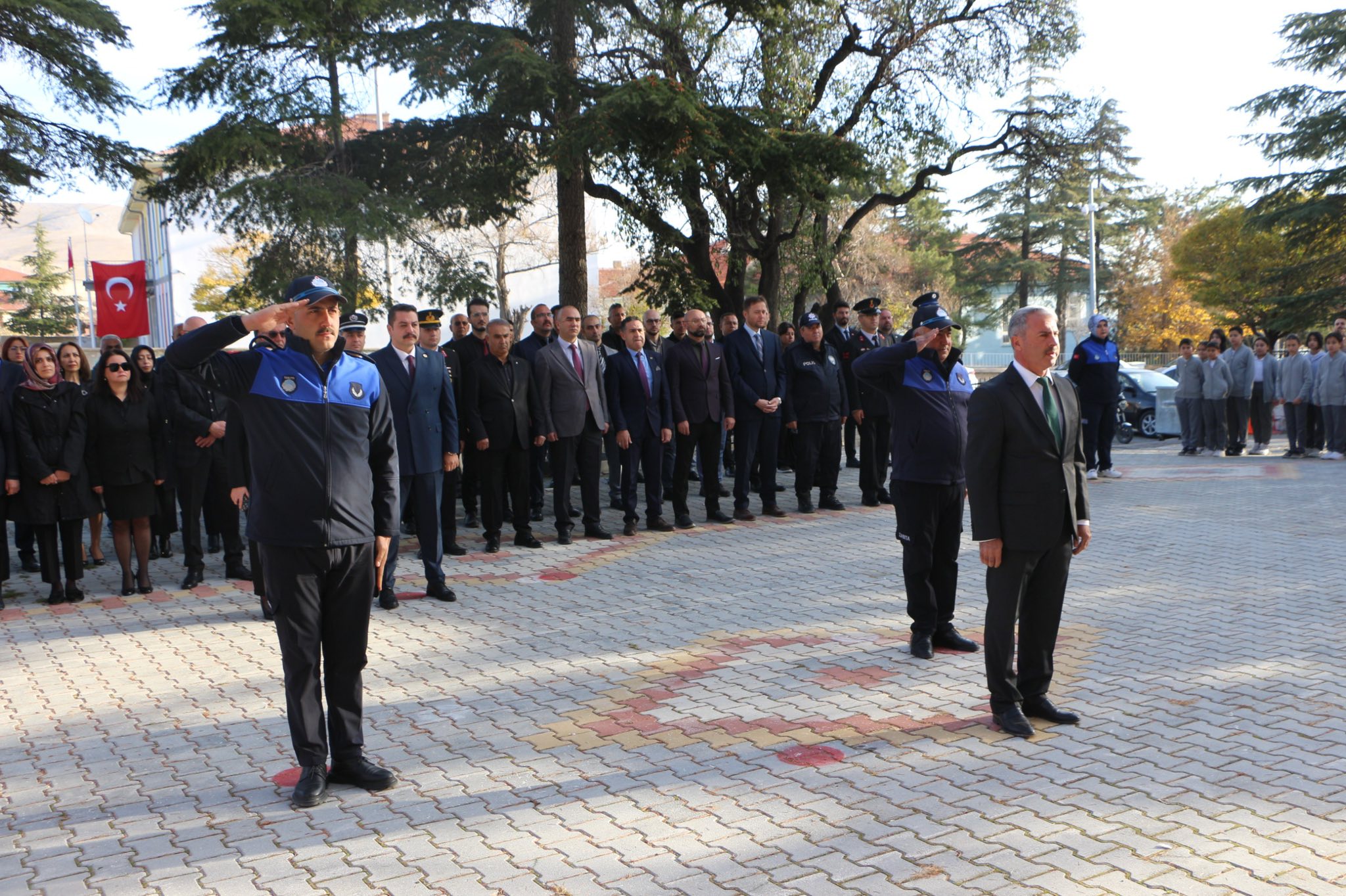 Törende Atatürk Anıtı’na çelenklerin sunulmasının ardından, saat 09.05’te sirenler eşliğinde iki dakikalık saygı duruşunda bulunuldu ve ardından İstiklal Marşı okundu.